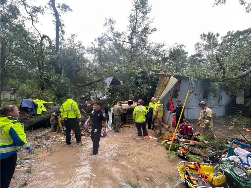 The Men and Woman who worked this incident are the same ones who serve across Montgomery County Texas every single day! Each shift we arrive to work and will potentially respond to an infinite number of different scenarios. This day and this scene was no different, multiple members of each department contorted their bodies to get underneath the home, putting their lives at certain risk! Although we worked quickly to stabilize the structure and make a safe working environment it was clear the danger we faced. The eyewall of Hurricane Beryl was upon us, multiple large trees swayed around us as we worked in 8” of water. In fact, early in the incident a second tree did fall onto the structure, luckily it was small enough to not affect the rescue or injure the patient further or your first responders. All personnel remained vigilant but continued to work unbothered by the risk.