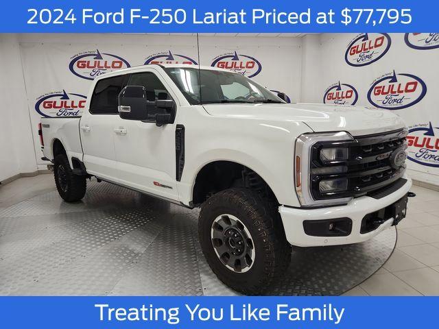 Order Code 608A, F-250 >10K GVWR Package, Wheels: 18' Bright Machined & Carbonized Gray Alum, Front ActiveX Trimmed 40/Console/40 Seats, Radio: B&O Sound System by Bang & Olufsen, FX4 Off-Road Package, Engine Block Heater, SecuriCode Keyless Entry Keypad (Driver's Side), Dual AGM 68 AH Battery, 6' Angular Bright Anodized Step Bars, Privacy Glass, Upfitter Switches (6), Front License Plate Bracket, Unique FX4 Off-Road Box Decal, Hill Descent Control, Off-Road Specifically Tuned Shock Absorbers, SiriusXM w/360L, Transfer Case & Fuel Tank Skid Plates, BLIS w/Cross-Traffic Alert, Ford Connectivity Package (1-Year Included), Flow-Through Console, SYNC 4 w/Enhanced Voice Recognition, 4-Wheel Disc Brakes, Internet access capable: 5G Modem - Ford Connectivity Package, Navigation system: Connected Navigation, Emergency communication system: SYNC 4 911 Assist, AM/FM radio: SiriusXM with 360L, Auto High-beam Headlights, Compass, 8 Speakers, Auto-dimming Rear-View mirror, Front beverage holders, Ventilated front seats, Variably intermittent wipers, Turn signal indicator mirrors, Trip computer, Traction control, Tilt steering wheel, Telescoping steering wheel, Steering wheel mounted audio controls, Split folding rear seat, Speed control, Security system, Remote keyless entry, Rear window defroster, Rear step bumper, Rear seat center armrest, Rear reading lights, Rain sensing wipers, Power windows, Power steering, Power passenger seat, Power driver seat, Power door mirrors, Pedal memory, Passenger vanity mirror, Passenger door bin, Panic alarm, Overhead console, Overhead airbag, Outside temperature display, Memory seat, Low tire pressure warning, Illuminated entry, Heated steering wheel, Heated rear seats, Heated front seats, Heated door mirrors, Garage door transmitter, Fully automatic headlights, Front reading lights, Front fog lights, Front dual zone A/C, Front anti-roll bar, Dual front side impact airbags, Dual front impact airbags, Driver vanity mirror, Driver door bin, Delay-off headlights, Bumpers: chrome, Brake assist, Automatic temperature control, Alloy wheels, Adjustable pedals, ABS brakes, Tachometer, Rear Parking Sensors, Front Center Armrest, Front Bucket Seats, Electronic Stability Control, Air Conditioning