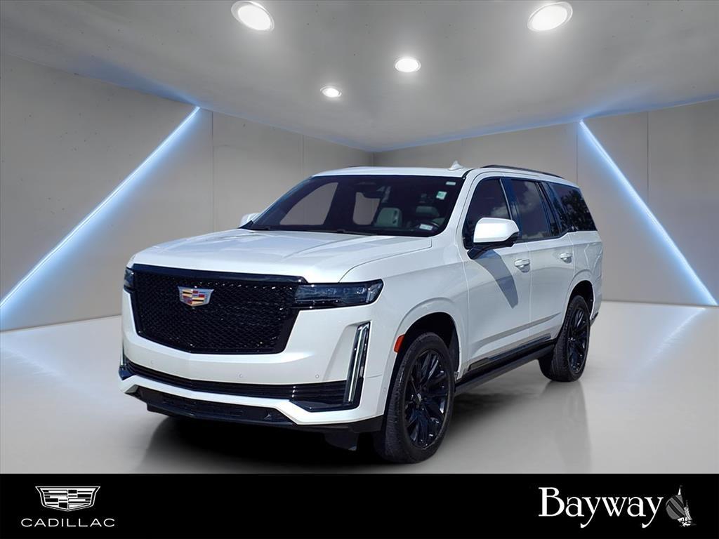 Navigation System, Driver Awareness Package, Preferred Equipment Group 1SB, Theft-Deterrent Package, 16 Speakers, AM/FM radio: SiriusXM, Bose Centerpoint 16 Speaker Surround Sound System, CD player, DVD-Audio, HD Radio, Radio data system, Radio: AM/FM Cadillac User Experience w/Nav, Rear audio controls, Single Slot CD/MP3 Player, SiriusXM Satellite Radio, Air Conditioning, Automatic temperature control, Front dual zone A/C, Rear air conditioning, Rear window defroster, 12-Way Power Front Passenger Seat Adjuster, 2-Position Memory For Driver's Seat Adjuster, Heads-Up Display, Memory seat, Pedal memory, Power driver seat, Power steering, Power windows, Reconfigurable 4-Color Head-Up Display, Remote keyless entry, Second Row Bucket Seats, Steering wheel memory, Steering wheel mounted audio controls, Adaptive suspension, Auto-leveling suspension, Magnetic Ride Control Suspension, Traction control, 4-Wheel Disc Brakes, ABS brakes, Dual front impact airbags, Dual front side impact airbags, Emergency communication system: OnStar and Cadillac connected services capable, Front anti-roll bar, Front wheel independent suspension, Low tire pressure warning, Occupant sensing airbag, Overhead airbag, Rear anti-roll bar, Power moonroof, Power Tilt-Sliding Sunroof w/Express-Open/Close, Power Liftgate, Brake assist, Electronic Stability Control, Exterior Parking Camera Rear, Auto High-beam Headlights, Delay-off headlights, Fully automatic headlights, Panic alarm, Safety Alert Seat, Security system, Theft-Deterrent Alarm System, Speed control, Auto-dimming door mirrors, Black Front License Plate Bracket, Bodyside moldings, Bumpers: body-color, Chrome Exhaust Tip, Heated door mirrors, IntelliBeam Automatic High Beam On/Off, Power door mirrors, Rear Camera Washer, Roof rack: rails only, Spoiler, Turn signal indicator mirrors, Adjustable pedals, All-Weather Cargo Mat (LPO), Apple CarPlay/Android Auto, Auto tilt-away steering wheel, Compass, Driver door bin, Driver vanity mirror, Forward Collision Alert, Front reading lights, Garage door transmitter, Heated steering wheel, Illuminated entry, Inclination Sensor, Lane Change Alert w/Side Blind Zone Alert, Lane Keep Assist w/Lane Departure Warning, Leather Shift Knob, Leather steering wheel, Low Speed Forward Automatic Braking, NavTraffic, Outside temperature display, Overhead console, Passenger vanity mirror, Rear Camera Mirror, Rear Cross-Traffic Alert, Rear reading lights, Tachometer, Telescoping steering wheel, Tilt steering wheel, Trip computer, Vehicle Interior Movement Sensor, 3rd row seats: split-bench, Front Bucket Seats, Heated & Cooled Front Bucket Seats, Heated front seats, Heated rear seats, Leather Seating Surfaces, Power passenger seat, Split folding rear seat, Ventilated front seats, Front Center Armrest w/Storage, Passenger door bin, Alloy wheels, Wheels: 22' x 9' 7-Spoke Aluminum w/Premium Paint, Rain sensing wipers, Rear window wiper, Variably intermittent wipers, 3.23 Axle Ratio