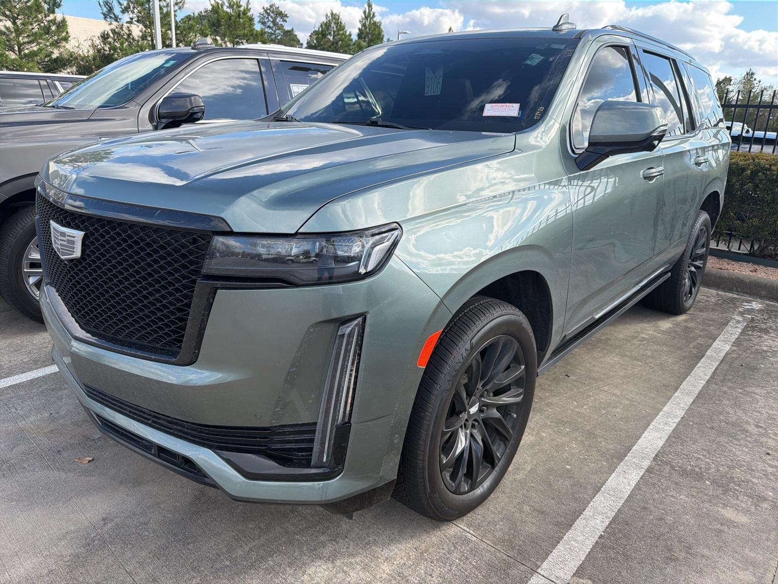 Navigation System,   All-Weather Floor Liner Package (LPO),   Floor Liner Package (LPO),   Heavy-Duty Trailering Package,   Onyx Package (LPO),   Preferred Equipment Group 1SD,   Touring Package,   Active Noise Cancellation,   AKG Studio Reference 36-Speaker Audio System,   AM/FM radio: SiriusXM with 360L,   Audio memory,   HD Radio,   Radio data system,   Radio: AM/FM w/Navigation,   Rear audio controls,   SiriusXM w/360L,   Air Conditioning,   Automatic temperature control,   Front dual zone A/C,   Rear air conditioning,   Rear window defroster,   4-Way Power Driver Lumbar Seat Adjuster,   8-Way Power Driver Seat Adjuster,   8-Way Power Front Passenger Seat Adjuster,   Front Auxiliary 12-volt Power Outlet,   Heads-Up Display,   Memory seat,   Not Equipped w/2nd Row Express-Up Window Control,   Power driver seat,   Power steering,   Power windows,   Remote keyless entry,   Steering wheel memory,   Steering wheel mounted audio controls,   A/V remote,   Headphones,   Adaptive suspension,   Air Ride Adaptive Suspension,   Electronic Limited-Slip Differential,   Four wheel independent suspension,   Magnetic Ride Control Suspension,   Traction control,   4-Wheel Disc Brakes,   ABS brakes,   Door Lock & Latch Shields,   Dual front impact airbags,   Dual front side impact airbags,   Emergency communication system: OnStar and Cadillac connected services capable,   Front anti-roll bar,   Low tire pressure warning,   Occupant sensing airbag,   Overhead airbag,   Rear anti-roll bar,   Power moonroof,   Power Panoramic Tilt-Sliding Sunroof,   Rear Seat Entertainment System,   Power Liftgate,   Brake assist,   Electronic Stability Control,   Full Semi-Aniline Leather Seat Trim,   Exterior Parking Camera Rear,   Auto High-beam Headlights,   Delay-off headlights,   Fully automatic headlights,   Night vision lights,   3 Years of OnStar & Connected Services Plan,   Automatic Seat Belt Tightening,   Panic alarm,   Security system,   Theft-Deterrent Alarm System,   Adaptive Cruise Control,   Speed control,   Super Cruise,   Auto-dimming door mirrors,   Body-Color Door Handles,   Bumpers: body-color,   Door auto-latch,   Front License Plate Bracket,   Gloss Black Escalade Nameplate (LPO) (DISC),   Heated door mirrors,   Monochrome Cadillac Emblems (LPO) (DISC),   Power door mirrors,   Power-Retractable Assist Steps,   Rear Camera Mirror Washer,   Soft Closing Front & Rear Doors,   Spoiler,   Turn signal indicator mirrors,   16.9' Diagonal OLED Infotainment Screen,   All-Weather Integrated Cargo Liner (LPO),   Apple CarPlay/Android Auto,   Auto tilt-away steering wheel,   Compass,   Cooled Console w/Covered Storage,   Driver door bin,   Driver vanity mirror,   Enhanced Automatic Emergency Braking,   Enhanced Automatic Parking Assist,   Floor Console w/Covered Storage,   Front reading lights,   Garage door transmitter,   Genuine wood console insert,   Genuine wood dashboard insert,   Genuine wood door panel insert,   Glass Breakage Sensor,   Heated steering wheel,   Illuminated entry,   Illuminating Front & Rear Sill Plates,   Leather steering wheel,   Outside temperature display,   Overhead console,   Passenger vanity mirror,   Platinum Interior Trim,   Rear Camera Mirror,   Rear Cross Traffic Alert,   Rear reading lights,   Reconfigurable Full-Color Head-Up Display,   Reverse Automatic Braking,   Smart Trailer Integration Indicator,   Tachometer,   Teen Driver,   Telescoping steering wheel,   Tilt steering wheel,   Trailer Side Blind Zone Alert,   Trip computer,   Vehicle Inclination Sensor,   Vehicle Interior Movement Sensor,   Voltmeter,   Wired Auxiliary Trailer Camera (LPO),   Wireless Apple CarPlay/Wireless Android Auto,   2-Presets Memory For Driver Seat Adjuster,   3rd row seats: split-bench,   4-Way Power Front Passenger Lumbar Seat Adjuster,   Front Bucket Seats,   Heated & Ventilated Driver & Front Passenger Seats,   Heated Driver & Front Passenger Seats,   Heated front seats,   Heated rear seats,   Power Lumbar Massage Driver Seat,   Power Lumbar Massage Front Passenger Seat,   Power passenger seat,   Split folding rear seat,   Ventilated front seats,   Front Center Armrest w/Storage,   Passenger door bin,   Hitch Guidance w/Hitch View,   Integrated Trailer Brake Controller,   Trailer Tire Pressure Monitoring System,   Trailering Assist Guidelines,   Alloy wheels,   Wheels: 22' 18-Spoke Alloy,   Wheels: 22' Forged Multi-Spoke Alloy (LPO),   Wheels: 22' Interim (LPO),   Rain sensing wipers,   Rear window wiper,   Variably intermittent wipers,   3.23 Axle Ratio