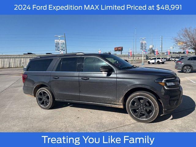 Front License Plate Bracket, Stealth Performance Package, 2nd Row Power-Folding Captain's Chairs, Driver's Package, Equipment Group 600A Standard Package, Stealth Appearance Package, 3.73 Axle Ratio, SiriusXM with 360L, Wheels: 22' x 9.0' Ebony Bright Machined Face Aluminum, Wheels: 24' x 9.5' Ebony Painted Aluminum, Wheels: 20' x 8.5' Ebony Bright Machined Aluminum, Ford Co-Pilot360 Active 2.0, Black Painted Roof, Black Onyx Painted Power Deployable Running Boards, Black Platinum Badge on Tailgate, Black Expedition Lettering on Hood, Black Belt Molding, BlueCruise Equipped (90-Day Trial), Ford Connectivity Package (1-Year Included), Ford Digital Experience, Heated and Ventilated Leather Front Captain's Chairs, Carbon Black Front Bumper/Fascia, Rear Side Windows Laminated Glass, Signature Grille Lighting, Intersection Assist, Black Headlamp Bezel with Ebony Trim Applique, Radio: B&O Play Unleashed, Black Roof Rails, Engine Sound Enhancer, Radio: B&O Sound System by Bang and Olufsen, Power Tilt/Telescopic Steering Wheel with Memory, High Flow Exhaust System, 4-Wheel Disc Brakes, Apple CarPlay/Android Auto, Emergency communication system: 911 Assist, Power moonroof: Vista Roof, AM/FM radio: SiriusXM with 360L, Auto High-beam Headlights, Exterior Parking Camera Rear, Compass, Speed-Sensitive Wipers, 10 Speakers, Auto-dimming Rear-View mirror, Ventilated front seats, Variably intermittent wipers, Turn signal indicator mirrors, Trip computer, Traction control, Tilt steering wheel, Telescoping steering wheel, Steering wheel mounted audio controls, Steering wheel memory, Split folding rear seat, Speed-sensing steering, Speed control, Security system, Remote keyless entry, Reclining 3rd row seat, Rear window wiper, Rear window defroster, Rear reading lights, Rear anti-roll bar, Rear air conditioning, Rain sensing wipers, Radio data system, Power windows, Power steering, Power passenger seat, Power driver seat, Power door mirrors, Passenger vanity mirror, Passenger door bin, Panic alarm, Overhead console, Overhead airbag, Outside temperature display, Occupant sensing airbag, Memory seat, Low tire pressure warning, Leather steering wheel, Illuminated entry, Heated steering wheel, Heated rear seats, Heated front seats, Heated door mirrors, Genuine wood door panel insert, Genuine wood dashboard insert, Garage door transmitter, Fully automatic headlights, Front reading lights, Front dual zone A/C, Front anti-roll bar, Four wheel independent suspension, Dual front side impact airbags, Dual front impact airbags, Driver vanity mirror, Driver door bin, Delay-off headlights, Bumpers: body-color, Brake assist, Automatic temperature control, Auto-dimming door mirrors, Alloy wheels, Adjustable head restraints: driver and passenger w/tilt, ABS brakes, 3rd row seats: split-bench, Voltmeter, Tachometer, Spoiler, Navigation System, Front Center Armrest, Front Bucket Seats, Electronic Stability Control, Air Conditioning