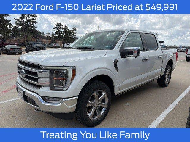 Navigation system: Connected Navigation, Equipment Group 502A High, Ford Connectivity Package (1-Year Included), FX4 Off-Road Package, GVWR: 7, 400 lbs Payload Package, Internet access capable: 5G Modem - Ford Connectivity Package, Lariat Black Appearance Package, Mobile Office Package, 8 Speakers, AM/FM radio: SiriusXM with 360L, Radio data system, Radio: B&O Sound System by Bang and Olufsen, Radio: B&O Unleashed Sound System by Bang & Olufsen, Air Conditioning, Automatic temperature control, Front dual zone A/C, Rear window defroster, Head-Up Display, Memory seat, Power driver seat, Power steering, Power windows, Power-Adjustable Pedals with Memory, Remote keyless entry, Steering wheel mounted audio controls, Monotube Rear Shocks, Off-Road Tuned Front Shock Absorbers, Rock Crawl Mode, Traction control, 4-Wheel Disc Brakes, ABS brakes, Driver's Side SecuriCode Keyless-Entry Keypad, Dual front impact airbags, Dual front side impact airbags, Emergency communication system: SYNC 4 911 Assist, Front anti-roll bar, Front wheel independent suspension, Low tire pressure warning, Occupant sensing airbag, Overhead airbag, Body-Color Front and Rear Bumpers, Brake assist, Electronic Stability Control, Hill Descent Control, Auto High-beam Headlights, Delay-off headlights, Front fog lights, Fully automatic headlights, Panic alarm, Security system, Speed control, 4x4 FX4 Off-Road Bodyside Decal, Auto-dimming door mirrors, Black Exterior Badging, Black Grille, Black Taillamp Bezels, Bumpers: chrome, Front License Plate Bracket, Gray Box Side Decal, Heated door mirrors, Matte Black Tailgate F-150 Decal, Power door mirrors, Rear step bumper, Turn signal indicator mirrors, ActiveX Trimmed Bucket Seats, Ambient Lighting - Ice Blue Color Only, Auto-dimming Rear-View mirror, Compass, Console Worksurface, Dark Interior Appliques, Driver door bin, Driver vanity mirror, Front reading lights, Garage door transmitter, Heated steering wheel, Illuminated Driver and Passenger Visors, Illuminated entry, Outside temperature display, Overhead console, Partitioned Lockable Rear Storage, Passenger vanity mirror, Rear reading lights, Rear seat center armrest, SYNC 4 with Enhanced Voice Recognition, Tachometer, Telescoping steering wheel, Tilt steering wheel, Tray Style Floor Liner Without Carpet Mats, Trip computer, Wireless Charging, 2nd Row Heated Seats, Front Bucket Seats, Front Center Armrest, Heated front seats, Power passenger seat, Split folding rear seat, Ventilated front seats, Passenger door bin, Alloy wheels, Chrome wheels, Wheels: 18' Chrome-Like PVD, Wheels: 20' Chrome-Like PVD, Power-Sliding Rear Window, Rain sensing wipers, Variably intermittent wipers, Electronic Locking with 3.31 Axle Ratio, Disclaimer: Although every reasonable effort has been made to ensure the accuracy of the informatio