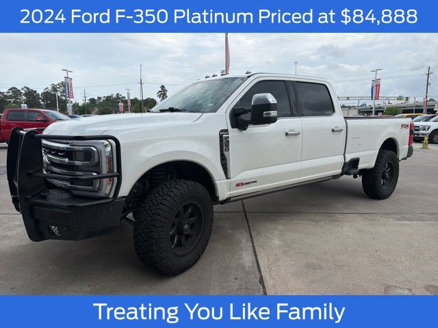 Front License Plate Bracket, Chrome Package, FX4 Off-Road Package, Unique FX4 Off-Road Box Decal, Hill Descent Control, Off-Road Specifically Tuned Shock Absorbers, SiriusXM with 360L, Engine Block Heater, SecuriCode Keyless Entry Keypad (driver's Side), Twin Panel Power Moonroof, Wheels: 20' Bright Machined Aluminum, Upfitter Switches (6), Order Code 710A, Ford Connectivity Package (1-Year Included), Flow-Through Console, Unique King Ranch Leather 40/Console/40 Seats, Radio: B&O Unleashed Sound System by Bang & Olufsen, SYNC 4 with Enhanced Voice Recognition, 4-Wheel Disc Brakes, Internet access capable: 5G Modem - Ford Connectivity Package, Navigation system: Connected Navigation, Emergency communication system: SYNC 4 911 Assist, AM/FM radio: SiriusXM with 360L, Auto High-beam Headlights, Compass, 14 Speakers, Heads-Up Display, Auto-dimming Rear-View mirror, Ventilated front seats, Variably intermittent wipers, Turn signal indicator mirrors, Trip computer, Traction control, Tilt steering wheel, Telescoping steering wheel, Steering wheel mounted audio controls, Steering wheel mounted A/C controls, Steering wheel memory, Split folding rear seat, Speed control, Security system, Remote keyless entry, Rear window defroster, Rear step bumper, Rear seat center armrest, Rear reading lights, Rain sensing wipers, Power windows, Power steering, Power passenger seat, Power driver seat, Power door mirrors, Pedal memory, Passenger vanity mirror, Passenger door bin, Panic alarm, Overhead console, Overhead airbag, Outside temperature display, Memory seat, Low tire pressure warning, Leather steering wheel, Illuminated entry, Heated steering wheel, Heated rear seats, Heated front seats, Heated door mirrors, Garage door transmitter, Fully automatic headlights, Front reading lights, Front fog lights, Front dual zone A/C, Front anti-roll bar, Dual front side impact airbags, Dual front impact airbags, Driver vanity mirror, Driver door bin, Delay-off headlights, Brake assist, Automatic temperature control, Auto tilt-away steering wheel, Alloy wheels, Adjustable pedals, Adjustable head restraints: driver and passenger w/tilt, ABS brakes, Tachometer, Front Center Armrest, Front Bucket Seats, Electronic Stability Control, Air Conditioning