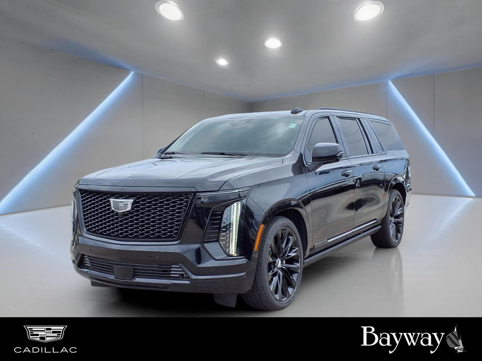Preferred Equipment Group 1SD,   3.23 Axle Ratio,   Wheels: 22' 18-Spoke Alloy,   Wheels: 22' Forged Multi-Spoke Alloy (LPO),   Wheels: 22' Interim (LPO),   Full Semi-Aniline Leather Seat Trim,   Magnetic Ride Control Suspension,   Radio: AM/FM w/Navigation,   Super Cruise,   Touring Package,   AKG Studio Reference 36-Speaker Audio System,   All-Weather Floor Liner Package (LPO),   Floor Liner Package (LPO),   All-Weather Integrated Cargo Liner (LPO),   Rear Seat Entertainment System,   Not Equipped w/2nd Row Express-Up Window Control,   Power-Retractable Assist Steps,   Front License Plate Bracket,   Onyx Package (LPO),   Black Roof Rack Cross Rails,   Gloss Black Escalade Nameplate (LPO) (DISC),   Monochrome Cadillac Emblems (LPO) (DISC),   Heavy-Duty Trailering Package,   3 Years of OnStar & Connected Services Plan,   8-Way Power Driver Seat Adjuster,   2-Presets Memory For Driver Seat Adjuster,   8-Way Power Front Passenger Seat Adjuster,   Power Lumbar Massage Driver Seat,   Soft Closing Front & Rear Doors,   Power Lumbar Massage Front Passenger Seat,   4-Way Power Driver Lumbar Seat Adjuster,   4-Way Power Front Passenger Lumbar Seat Adjuster,   Automatic Seat Belt Tightening,   Illuminating Front & Rear Sill Plates,   Power Panoramic Tilt-Sliding Sunroof,   Rear Camera Mirror Washer,   Floor Console w/Covered Storage,   Body-Color Door Handles,   Rear Camera Mirror,   Air Ride Adaptive Suspension,   Electronic Limited-Slip Differential,   Platinum Interior Trim,   Integrated Trailer Brake Controller,   Heated Driver & Front Passenger Seats,   Front Auxiliary 12-volt Power Outlet,   Heated & Ventilated Driver & Front Passenger Seats,   Adaptive Cruise Control,   Active Noise Cancellation,   Door Lock & Latch Shields,   Wireless Apple CarPlay/Wireless Android Auto,   Trailer Tire Pressure Monitoring System,   Hitch Guidance w/Hitch View,   Teen Driver,   Trailering Assist Guidelines,   Wired Auxiliary Trailer Camera (LPO),   SiriusXM w/360L,   HD Radio,   16.9' Diagonal OLED Infotainment Screen,   Smart Trailer Integration Indicator,   Rear Cross Traffic Alert,   Enhanced Automatic Emergency Braking,   Trailer Side Blind Zone Alert,   Enhanced Automatic Parking Assist,   Theft-Deterrent Alarm System,   Vehicle Inclination Sensor,   Vehicle Interior Movement Sensor,   Glass Breakage Sensor,   Reconfigurable Full-Color Head-Up Display,   Reverse Automatic Braking,   4-Wheel Disc Brakes,   Apple CarPlay/Android Auto,   Emergency communication system: OnStar and Cadillac connected services capable,   AM/FM radio: SiriusXM with 360L,   Auto High-beam Headlights,   Exterior Parking Camera Rear,   Front Center Armrest w/Storage,   Compass,   Heads-Up Display,   Front beverage holders,   Ventilated front seats,   Variably intermittent wipers,   Turn signal indicator mirrors,   Trip computer,   Traction control,   Tilt steering wheel,   Telescoping steering wheel,   Steering wheel mounted audio controls,   Steering wheel memory,   Split folding rear seat,   Speed control,   Security system,   Remote keyless entry,   Rear window wiper,   Rear window defroster,   Rear reading lights,   Rear audio controls,   Rear anti-roll bar,   Rear air conditioning,   Rain sensing wipers,   Radio data system,   Power windows,   Power steering,   Power passenger seat,   Power moonroof,   Power driver seat,   Power door mirrors,   Passenger vanity mirror,   Passenger door bin,   Panic alarm,   Overhead console,   Overhead airbag,   Outside temperature display,   Occupant sensing airbag,   Night vision lights,   Memory seat,   Low tire pressure warning,   Leather steering wheel,   Illuminated entry,   Heated steering wheel,   Heated rear seats,   Heated front seats,   Heated door mirrors,   Genuine wood door panel insert,   Genuine wood dashboard insert,   Genuine wood console insert,   Garage door transmitter,   Fully automatic headlights,   Front reading lights,   Front dual zone A/C,   Front anti-roll bar,   Four wheel independent suspension,   Dual front side impact airbags,   Dual front impact airbags,   Driver vanity mirror,   Driver door bin,   Door auto-latch,   Delay-off headlights,   Bumpers: body-color,   Brake assist,   Automatic temperature control,   Auto-dimming door mirrors,   Auto tilt-away steering wheel,   Audio memory,   Alloy wheels,   Adaptive suspension,   ABS brakes,   A/V remote,   3rd row seats: split-bench,   Voltmeter,   Tachometer,   Spoiler,   Power Liftgate,   Navigation System,   Headphones,   Front Bucket Seats,   Electronic Stability Control,   Air Conditioning