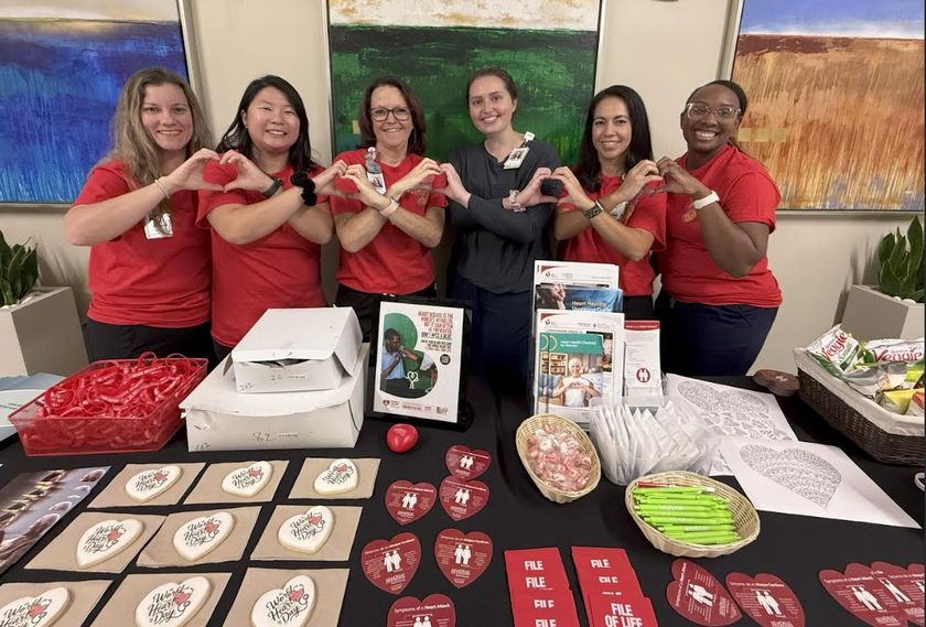 The affiliated care team with the Memorial Hermann Heart & Vascular Institute at Memorial Hermann The Woodlands Medical Center understand that heart disease can happen to anyone and offer patients a full spectrum of cardiovascular services. The new South Tower at Memorial Hermann The Woodlands has a dedicated floor with a heart and vascular intermediate care unit (IMU) and an intensive care unit (ICU), a dedicated floor with cardiac catheterization labs, electrophysiology labs and interventional radiology suites, plus a dedicated floor for outpatient cardiopulmonary testing and monitoring and advanced diagnostic screenings. Additionally on the campus, there are more than two dozen surgical suites and a 4,000-square-foot cardiac rehabilitation gym. Pictured are Memorial Hermann employees at a booth in honor of World Heart Day on September 29 at Memorial Hermann The Woodlands, where staff and visitors alike could stop by for heart disease educational info and a treat.