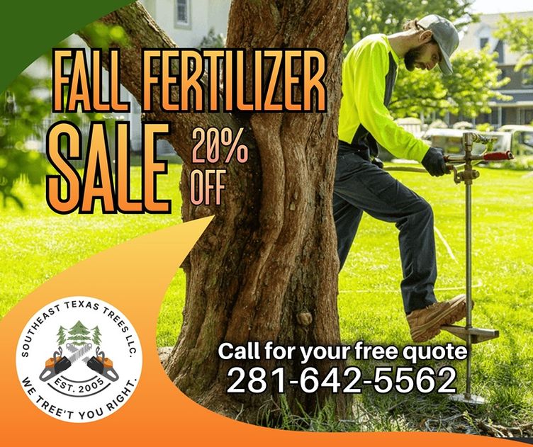Fall is the perfect time to give your trees the nutrients they need to thrive through winter and burst back stronger in spring! This season, Southeast Texas Trees is offering 20% OFF all fall fertilizer services, featuring our professional deep root injection fertilizer treatments.