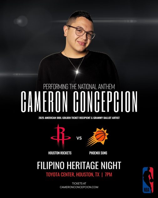 Local resident and former American Idol contestant Cameron Concepcion will be singing the National Anthem at the Houston Rockets Game tonight in honor of Filipino Heritage Night at the Toyota Center. The Houston Rockets will be playing against the Phoenix Suns.