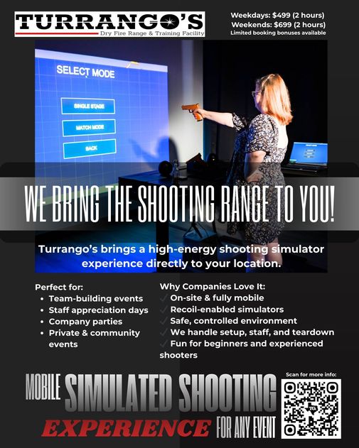 Looking for a unique, interactive experience that elevates your next corporate event, team-building activity, or private party? Turrango’s Dry Fire Range delivers an exciting shooting simulator experience-fully mobile, completely safe, and professionally managed-right to your location.