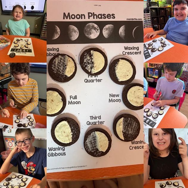 Our students had an absolute blast diving into the phases of the moon in the most fun (and delicious) way possible—using Oreos! Each student got hands-on as they carefully twisted, scraped, and shaped their cookies to represent each phase, from the new moon all the way to a full moon.