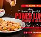 Introducing our NEW Power Lunch starting at just $15.95!* Enjoy a delicious hibachi meal within 45 minutes, or lunch is on us! Available Monday through Friday between 11 AM and 3 PM, in the dining room only. Participation may vary by location. Ask our team member for more details.