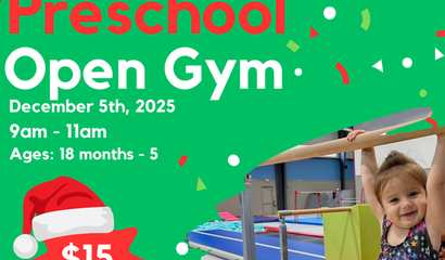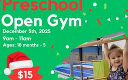 Preschool Open Gym 9:00am - 11:00am $15.00 per student Ages: 18 months - 5 years *Guardian must be present throughout open gym if under the age of 2* *3-5 years old must be potty trained* &nbs...