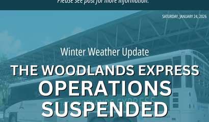The Woodlands Express Bus commuters are advised that Express Bus service will not operate on Monday, January 26, due to winter