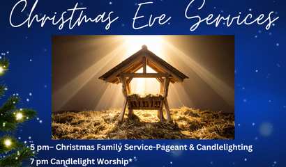 Christmas Eve Services: 5 pm - Christmas Family Service - Pageant & Candleighting 7 pm - Candlelight Worship online and in person