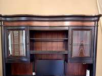 Brown 2-drawer desk. It's laminated particle board, not solid wood. It has flaws on the top. However, it is solid, steady, and drawers work. It's 49 inches from left to right, 24 inches from front to back, and 28 inches high. The chair opening is 33.5 inches wide. Smoke free home. $20
