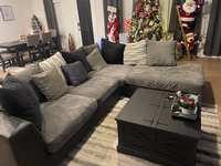 This set is from Pottery Barn Fremont Roll Arm Collection—Charcoal gray color. It’s in good condition. Bottom cushions are memory foam which makes this living set super comfortable. Normal wear.