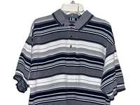 Medium men’s gray polo from US Polo Assn. It features a collar, 2-button closure, embroidered logo on left chest, split hems, and ribbed-cuff short sleeves. It’s 100% cotton and thicker than an athleisure polo. Very good condition with very little wear from smoke free home. $8