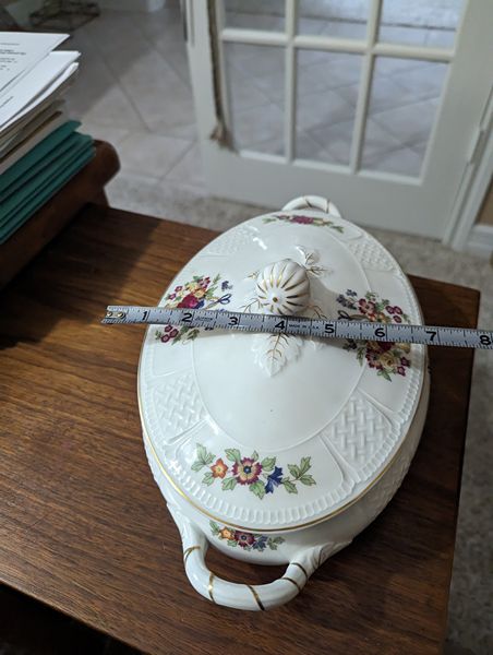 Floral Spray Border, Basket of Flowers. Bone china from Czechoslovakia. This piece has never been used. It was always kept wrapped up in a drawer. Non-smoking home..Price was $100.00.Price was $70.00