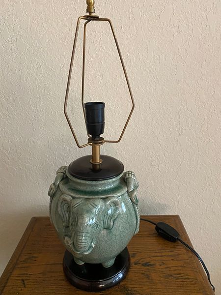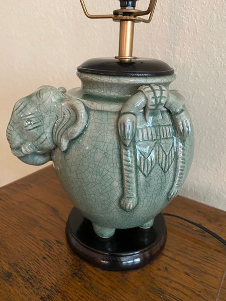 Beautiful Vintage Celandon Elephant Lamp (no shade) ~ The base & top of lamp are made of wood ~ 18"