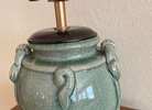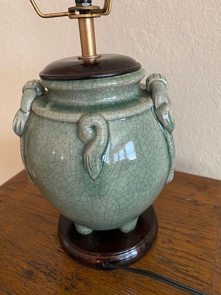 Vintage Celandon Glazed Ceramic Elephant Lamp