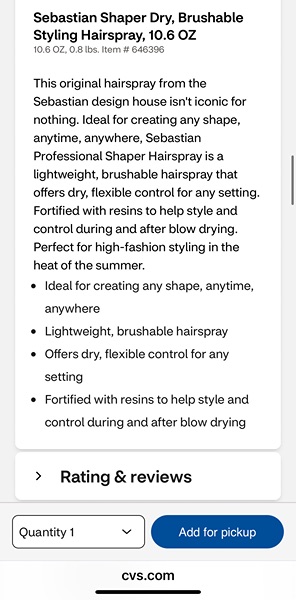 Includes Professional Sebastian Shaper Fierce (almost full) and Shaper Dry Brushable Styling Hairspray (more than half full)…$25 firm