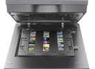 Dual lens system automatically selects a 4800 dpi optical resolution lens for reflective photo scanning or a 6400 dpi lens when using film holders.
