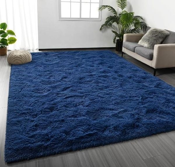 Anvarug Plush Area Rug 4x6 Navy Blue New