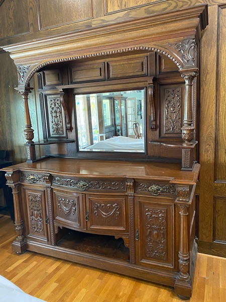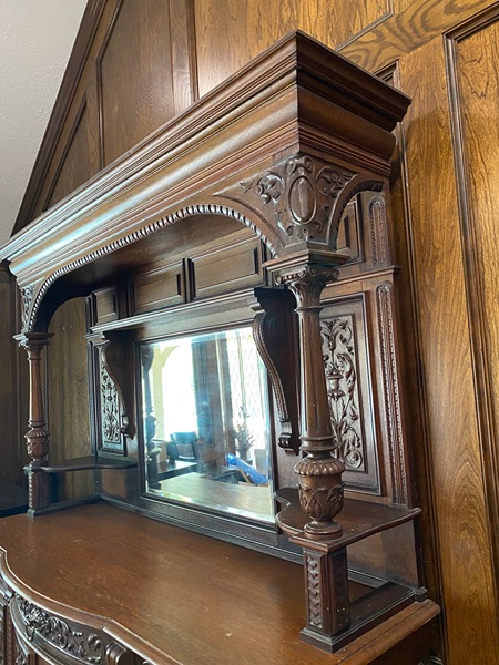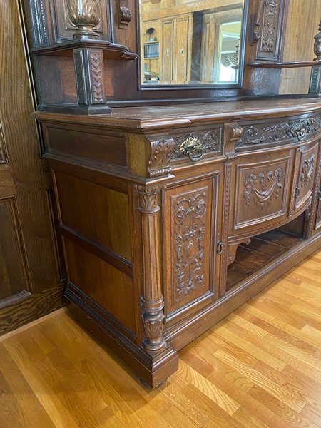 Beautiful antique buffet that is 7 feet 6 inches tall and 6 feet 5 inches wide. The bottom section is 40 inches tall and 3 feet deep. This is ideal for a bar, server, or display cabinet. This has been in my family for 50 years but I am moving and can't take it with me.