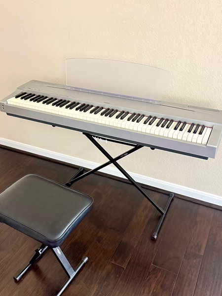88-key digital piano for home use, featuring the Graded Hammer Standard keyboard mechanism for realistic touch response, a built-in 12-watt stereo amplifier and 4.7" stereo speakers.