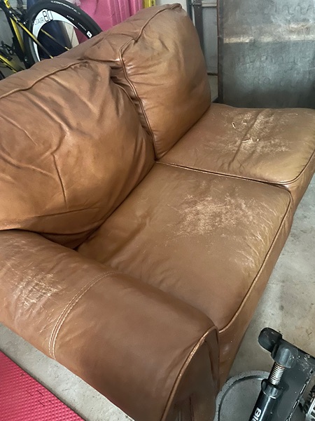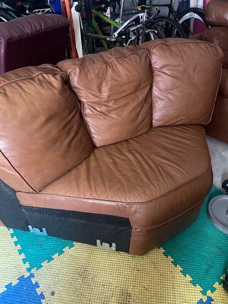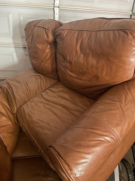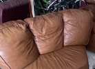 Leather, 3 pieces, center piece curved, damaged leather on one section only, tan colored
