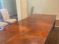 Selling a 5ft wide glass table and 6 cushioned chairs. Great shape.