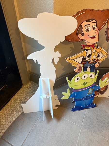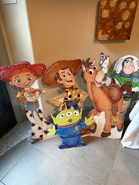 Toy Story character cutouts. Used for a baby shower for a few hours. All have stand up supports as shown in the photos except for the alien.