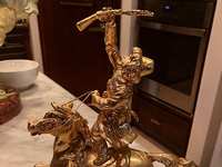Candle holder with a bear climbing a tree that is adorned with leaves and acorns. I believe it to be spelter with a bronze finish. Base is marble 18" T and 9"W at the base. I believe this to be Maitland Smith but not for sure.
