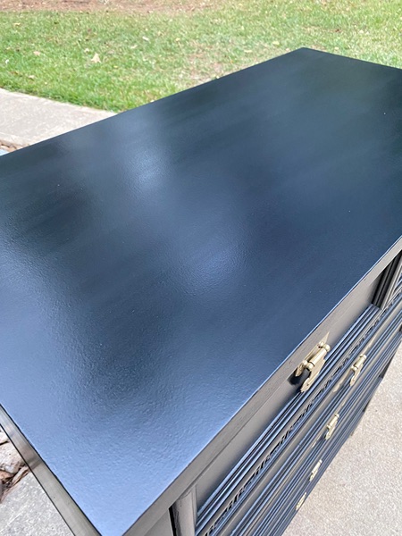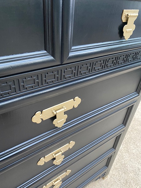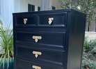 Vintage Dixie Shangri La chest of drawers refinished in Eclipse Black with Gold hardware and sealed with Black wax. 5 spacious drawers, heavy and sturdy! Pickup only in Magnolia.