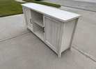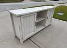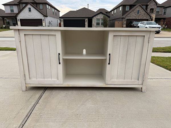 Wood entertainment center purchased from Marshall's Homegoods 1 year ago. It was assembled completely at the factory, so it is not the typical cheap particle board unit. It is very sturdy