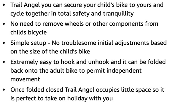 Peruzzo Trail Angel tow bar secures a child's bike to an adult bike and allows you to cycle together.
