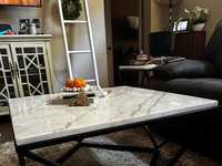 Round wrought iron table with cream top