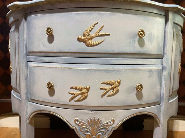 - We cleaned, filled, sanded, primed, added layers of creams and blues for a beautiful cloudy sky look. Then I applied hand poured moulds of birds, gilded and sealed for durability.