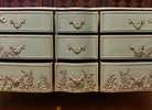 - All drawers are sturdy, dove tailed and glide smoothly in and out on their center wood rails with original polished hardware.