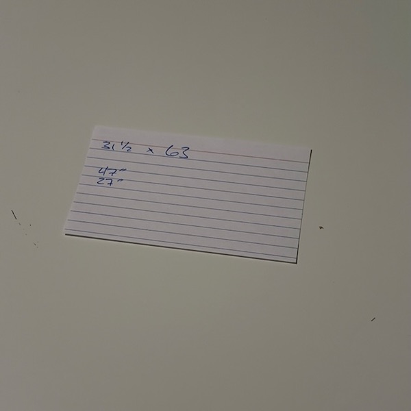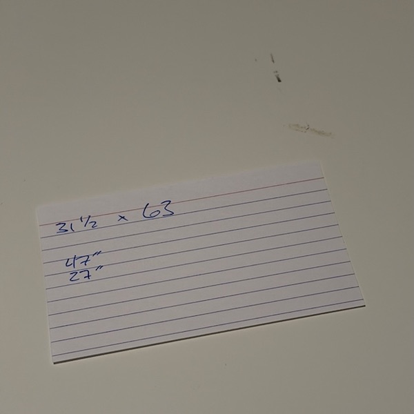 63" wide, 31.5" deep. Height adjustable from 27" to 47".
