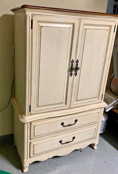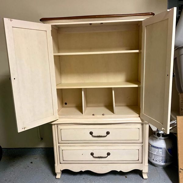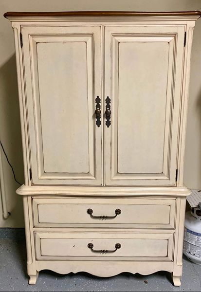 Drexel Wardrobe Armoire. Dimensions 5 ft tall x 3 ft wide x 18' front to back. Great conditio. French Countryside and solid wood.