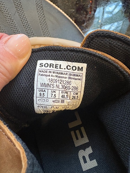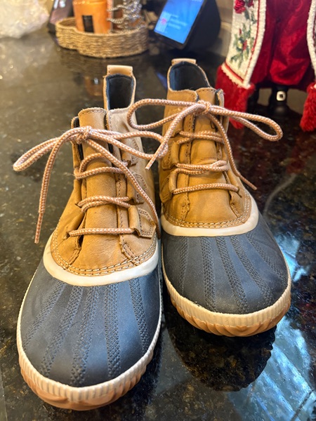 Ladies 9 1/2 M Used but new Sorel waterproof shoes. Never worn. Bought to wear in Canada to visit family. But they transferred back to warm climate before I went to wear them.