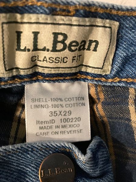 LL BEAN MEN'S CLASSIC FIT FLANNEL LINED JEANS SIZE 35 X 29