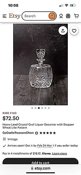 Crystal decanter, like new, 8 1/2” x 6”, no chips or cracks!...$40 firm