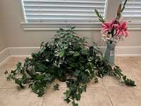 Dark green ceramic table lamp with a white shade. Approx. 21” tall x 13” at widest part of shade…$12 firm