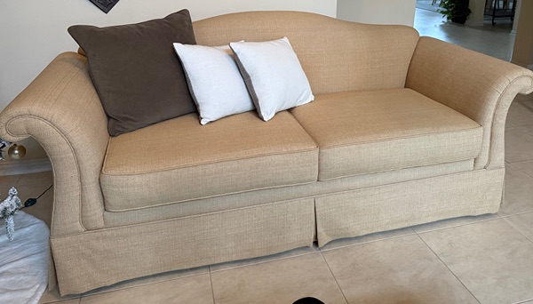 2 identical sofas 7' long. $320 for both. Will include 3 pillows on each, shown in second picture. Pick up in The Woodlands.