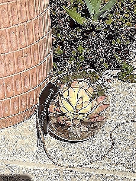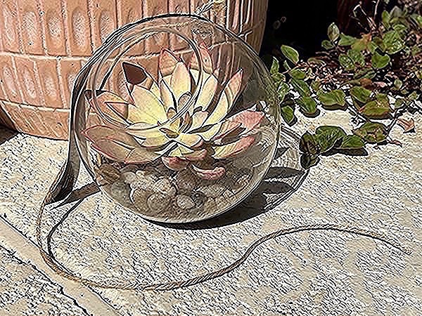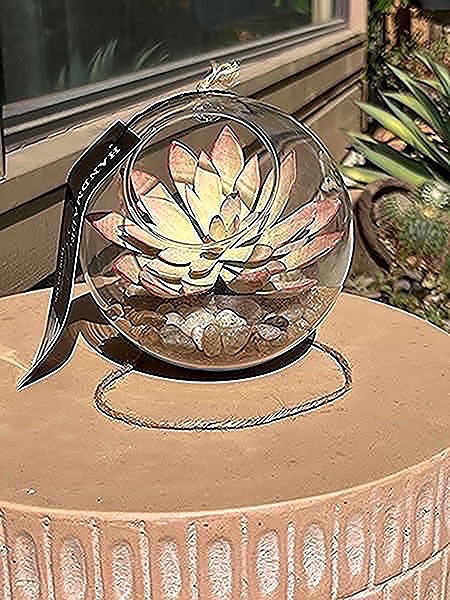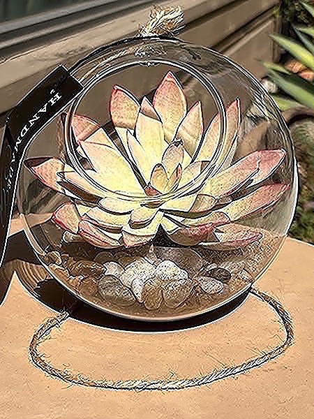 Handmade glass terrarium with a Pottery Barn faux succulent and river stones…$25 firm