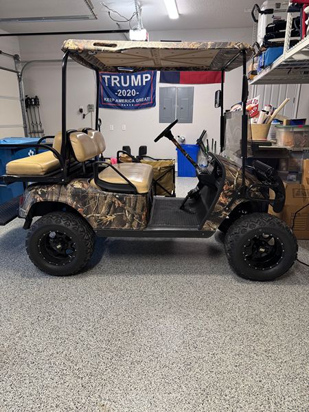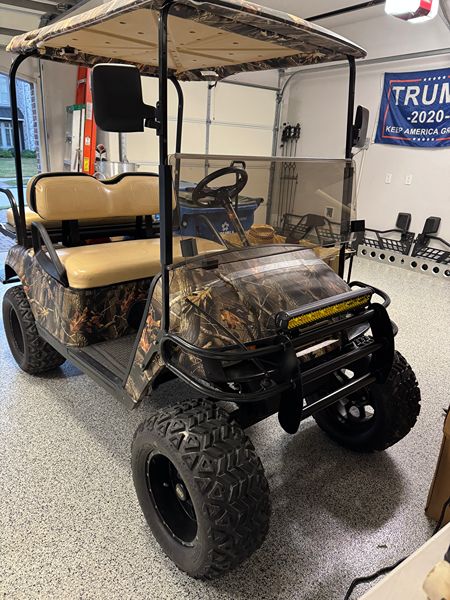 Lifted EZ- GO Golf Cart Car in Excellent condition. Always garage kept and maintained... NEW Batteries , New Tires, Brush Guard w/ LED light bar. Lifted with Mirrors & Windsheild. Upgraded steering. Cammo Wrapped. Radio with two speakers and a Very Loud Horn!! Asking $4,500