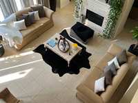 Perfect chair for a man cave. Comfortable, comes with an oversize stuffed pillow not shown. Must pick up. Please text 281.507.5885