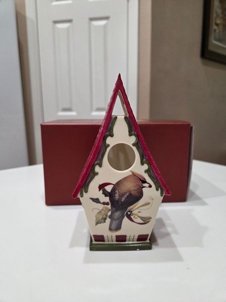 Lenox Winter Greetings Cedar Wax Wing Votive Birdhouse
