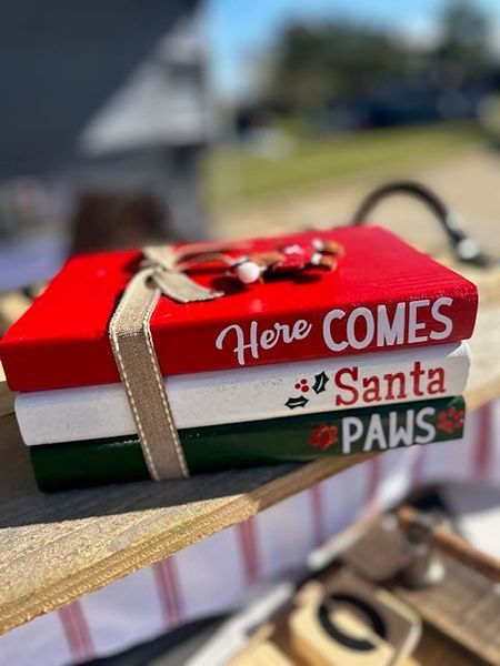 🐾 Wood Christmas Book Décor – “Here Comes Santa Paws” – $15 🐾